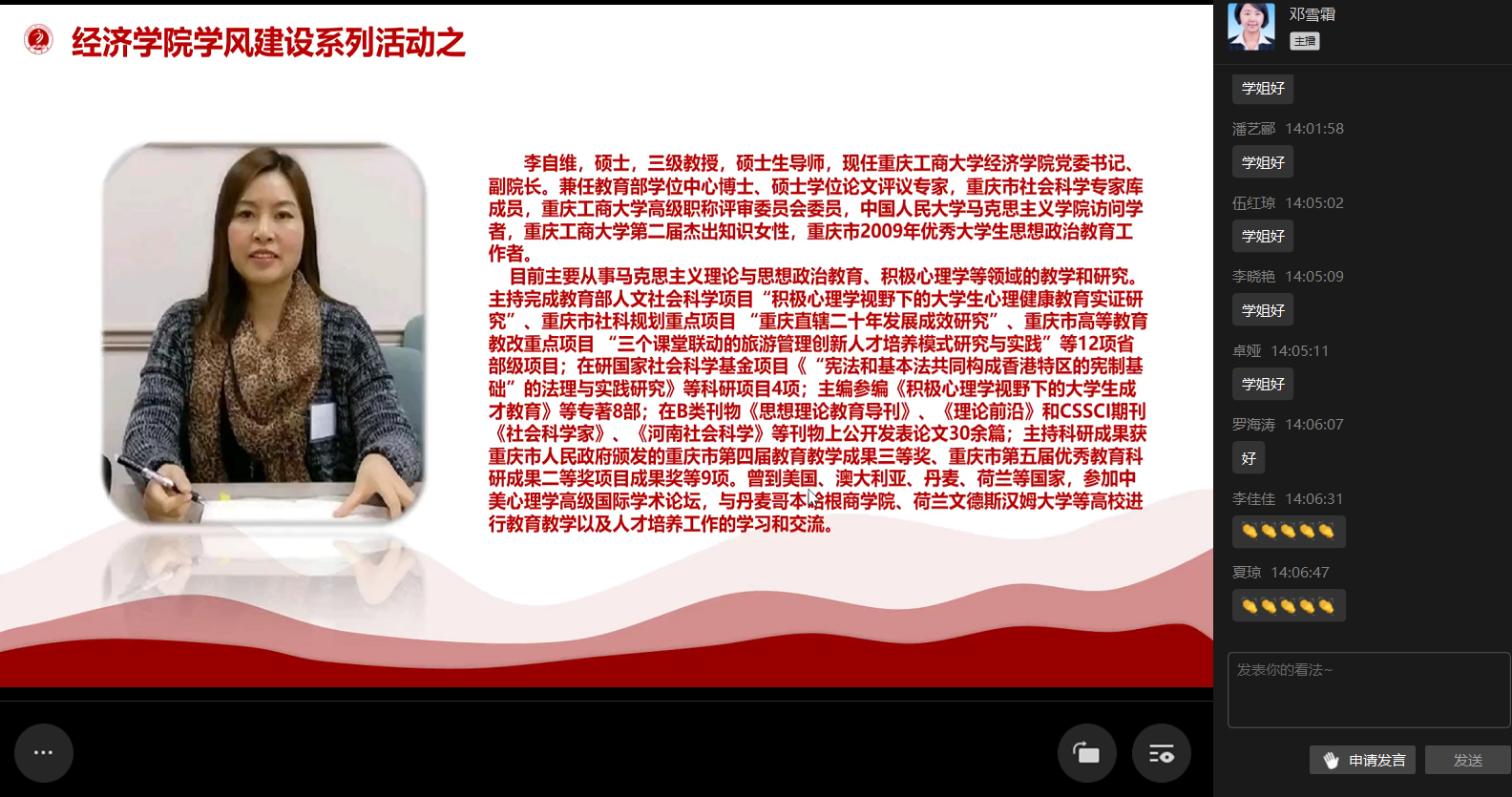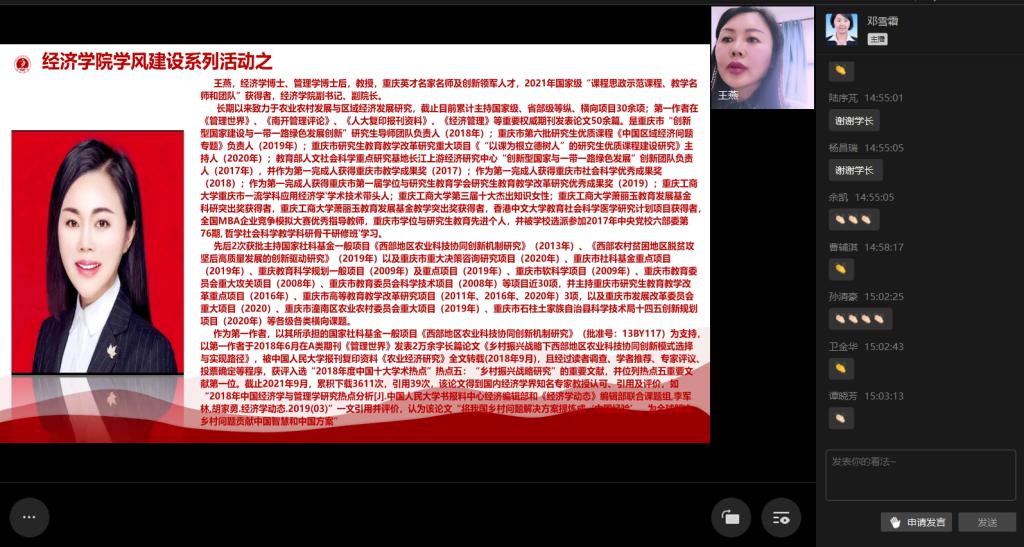 “立德树人,助力就业”,2021届优秀毕业生宣讲会暨2022届毕业生就业推进会于10月22日在线上成功举行。K1体育分党委书记李自维教授,公司党委副书记、副经理王燕教授,K1体育黄潇副经理,K1体育朱沙副经理、K1体育雷菁组织员、党政办及学团办办公室负责人、系主任、辅导员,2022届毕业生参与了本次会议。