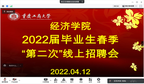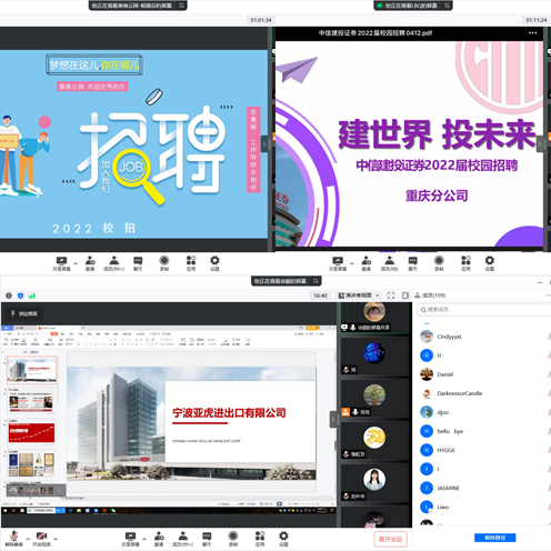 为进一步推动2022届毕业生就业,4月12日下午14点,公司举办了毕业生春季“第二次”线上招聘会。此次招聘会邀请到包括重庆晓道科技有限公司、重庆谊品弘渝科技有限公司、重庆宗申工业制造有限公司、宁波亚虎进出口有限公司、北京奥维云网大数据科技股份有限公司、重庆树人教育研究院、中信建投证券股份有限公司、领地集团等共15家企业,为公司2022届毕业生提供70余个岗位。