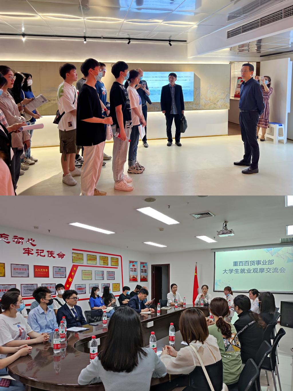 2022年4月27日上午,K1体育副经理尹元福带领K1体育应用经济系李然主任,毕业班辅导员喻智成老师、K1体育部分大四员工等一行赴国家级经济学实践教学基地——重庆商社集团进行访企拓岗就业实习观摩活动。双方就人才招聘与就业问题进行了深入交流,公司以前已毕业员工现重百员工同经济学子深切分享工作经验。商社集团人力资源部部长张泽军、人力资源主管林霞、重庆百货事业部人事主管李艳、百货事业部部分员工参加了本次活动。