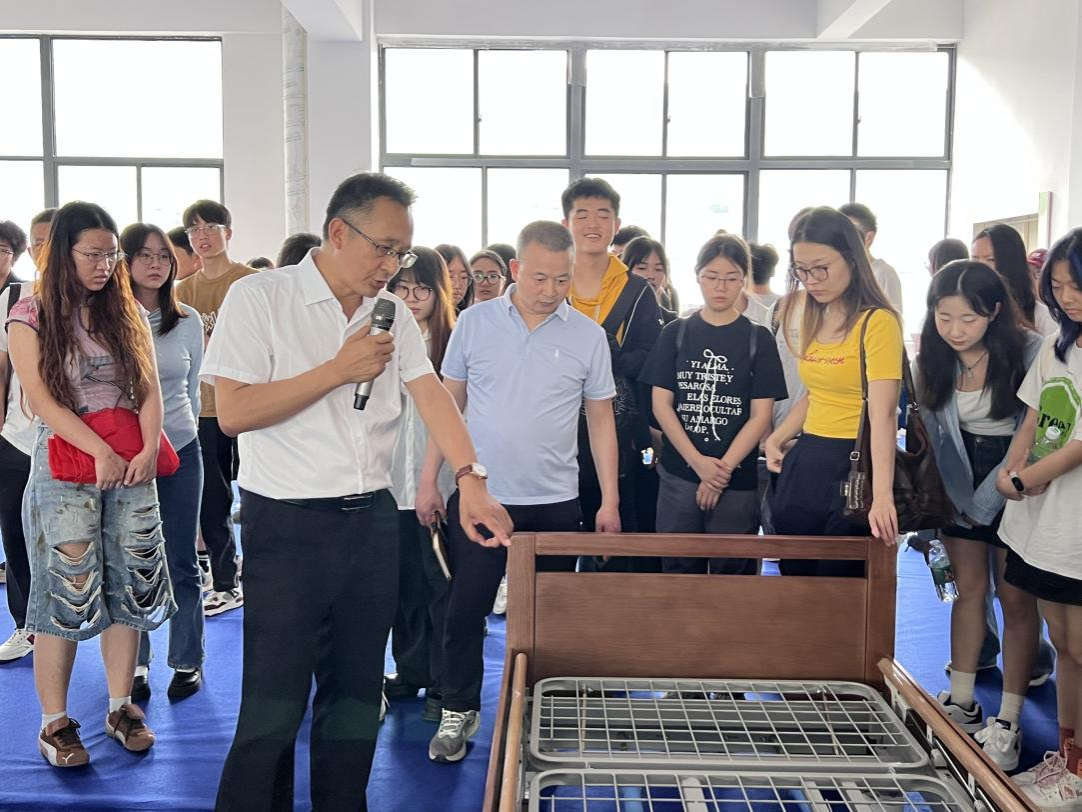 活动第一站,重庆顺美吉医疗器械有限公司展厅内,董事长陈权辉向参访师生展示企业自主研发的智能护理床系列产品。这家拥有多项专利的高新技术企业,其产品远销英国、欧盟、澳洲、美国和中东等国家和地区,为员工上演了“中国智造”的生动一课。