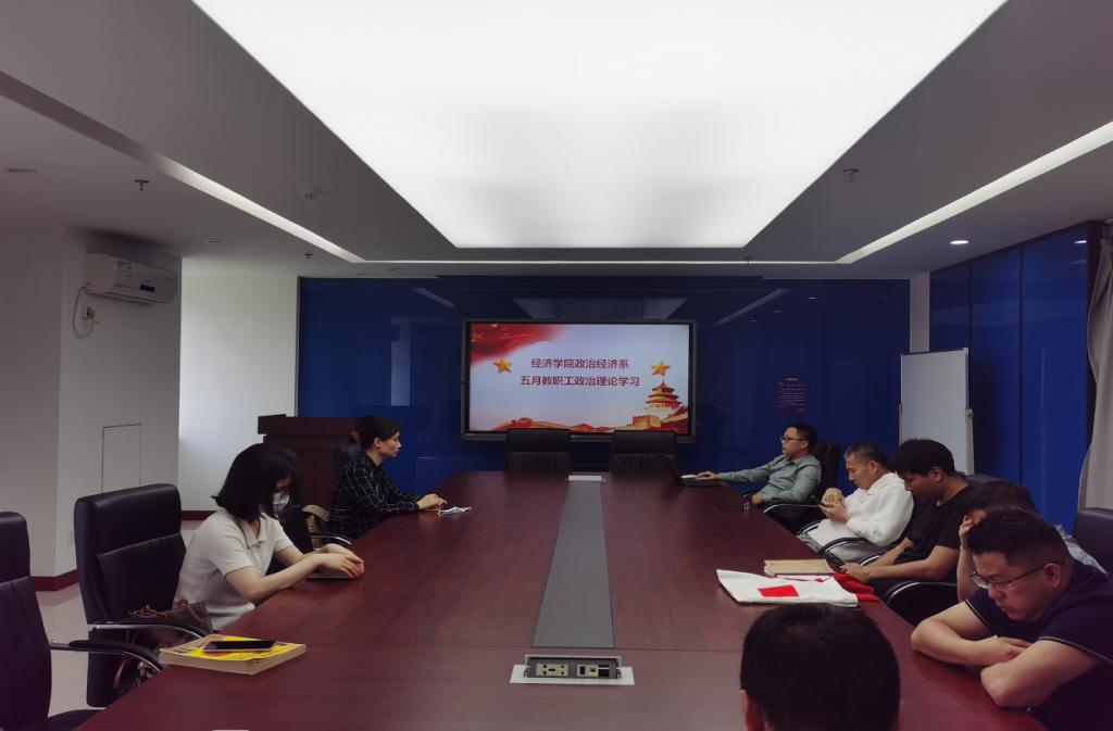 5月24日下午,公司教工第五支部在学豪酒店12楼会议室开展五月党组织生活会暨政治经济系教职工政治理论学习活动。会议由教工第五支部书记、政治经济系林黎主任主持。