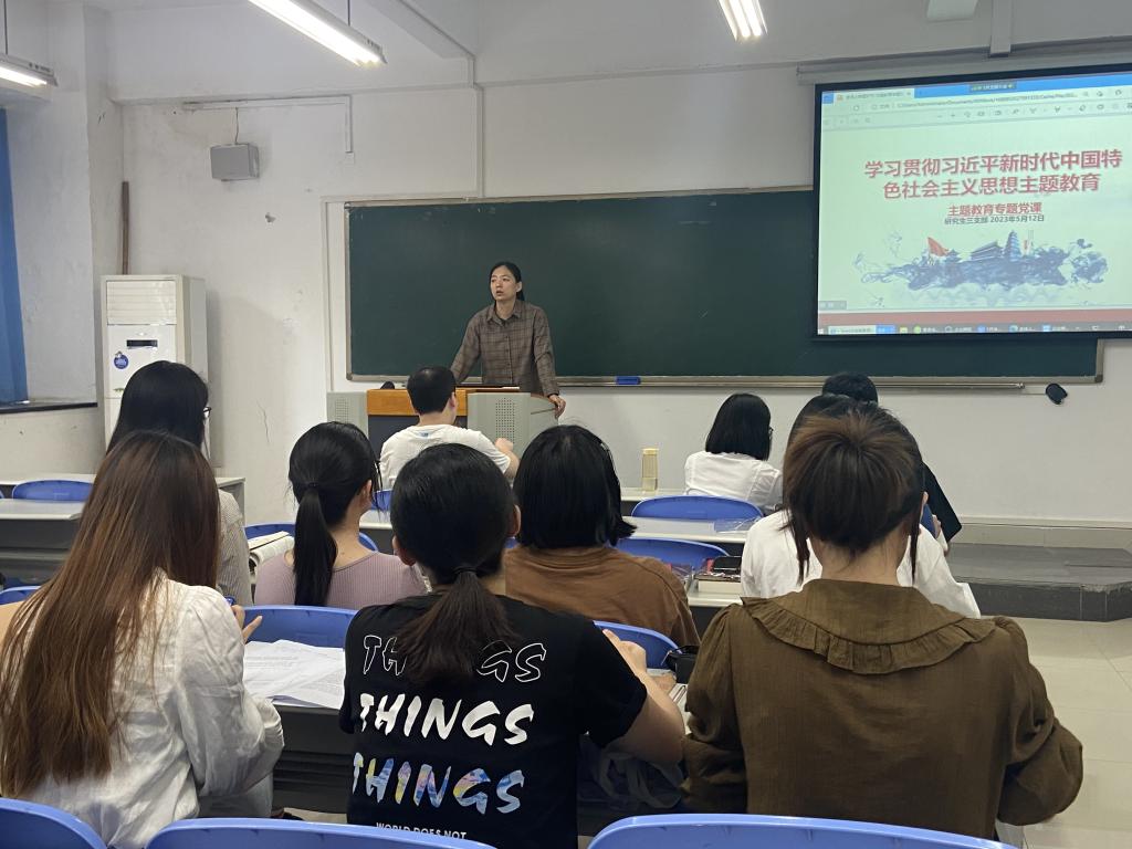 首先,支部书记薛晶月带领大家学习习近平新时代中国特色社会主义思想主题教育有关文件精神,主要从主题教育的总要求、具体目标、重点措施以及学习材料四方面展开,并结合支部成员应用经济学专业的特点,指出大家在进行科研工作时,需要深入农村了解情况,切忌纸上谈兵。之后,大家进行就学习内容积极进行线上答题活动并分享自身学习感想。党员陈俊从这次主题教育的总要求切入,认为开展主题教育是要理论学习与实践转化并重的过程,通过系统化理论学习,推动理论水平再上新的台阶。