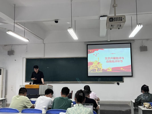最后,党员开展批评与自我批评环节,全体党员依次上台进行批评与自我批评,从理论学习、政治素养、能力本领、担当作为、工作作风、廉洁自律六个方面进行剖析,并针对查摆出的问题提出改进措施。通过批评与自我批评,可以增强党员同志的自我净化、自我完善、自我革新、自我提高能力,有利于党员同志自身的成长和进步,使党员更好地接受教育和培养,也有利于加深党员同志之间的团结和友谊,促进思想的交流和共同进步。