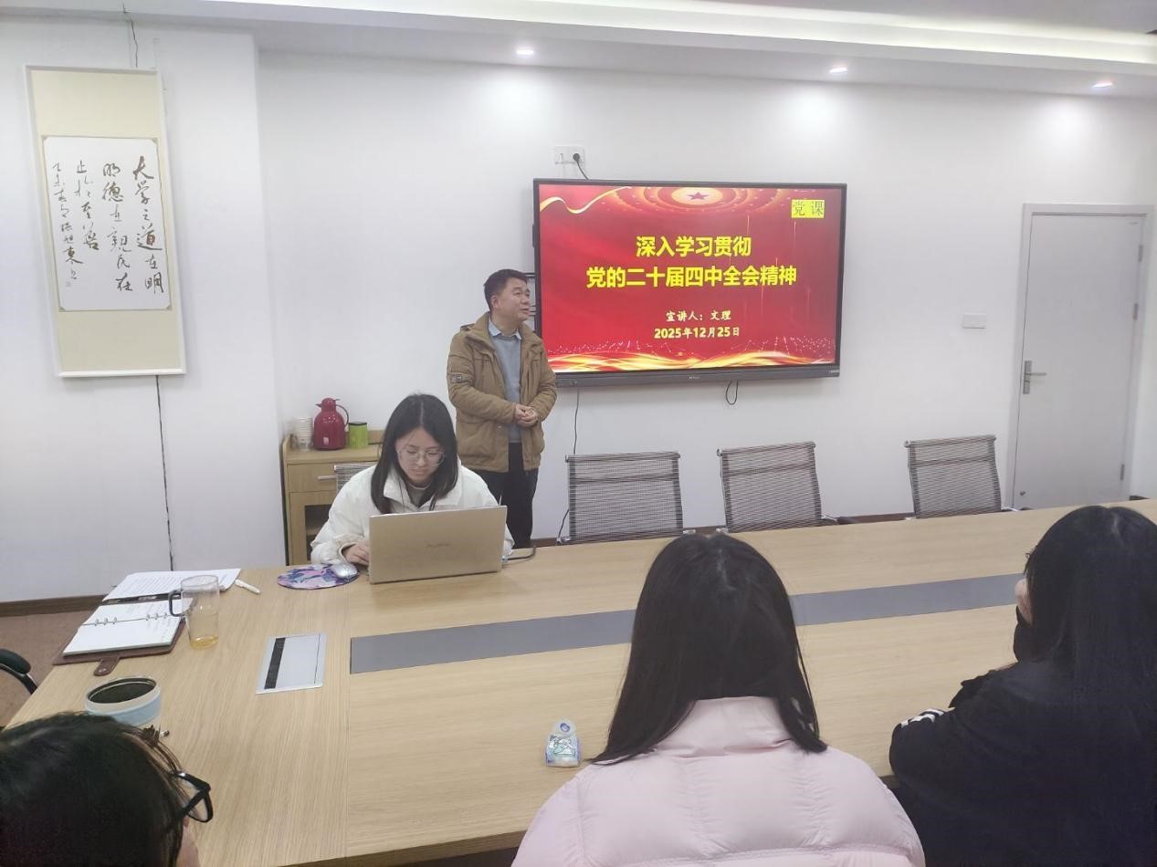 在“十五五”规划开局起步的关键阶段,为持续深化学习贯彻习近平新时代中国特色社会主义思想,切实把支部党员思想和行动统一到党的二十届四中全会精神上来,公司党委员工第四党支部于2025年12月25日下午在田家炳404会议室开展了“学习深化贯彻党的二十届四中全会”的专题党课,支部书记文理同志及全体党员共25人参加,活动由文理同志主持。