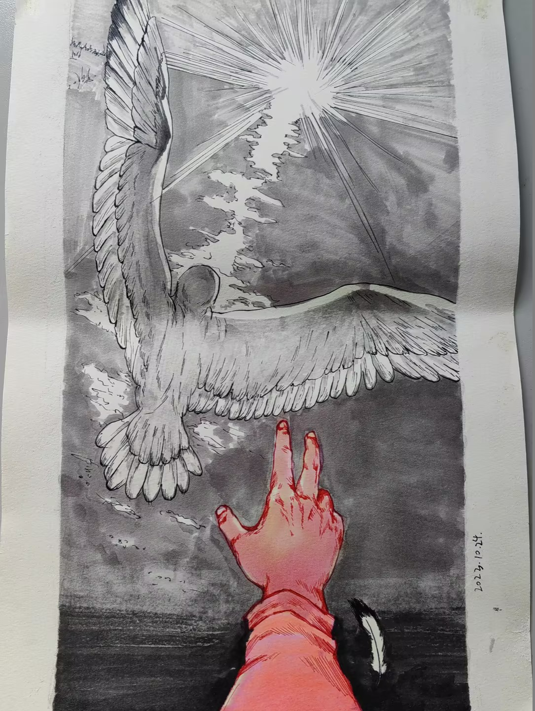 此次绘画活动采取自由主题和创作感想反馈相结合的形式,鼓励同学们通过想象和绘画展示自我丰富的内心世界。在收集到的绘画作品中,有宣传保护动物的、怀念童年时光的、记录美好风景的等各类主题……有同学反馈的感想中写道:“很久没有这样静下心来慢慢做一件事了,绘画让我感受到了生命的无限可能和美好前景,带给我鼓励和肯定。”