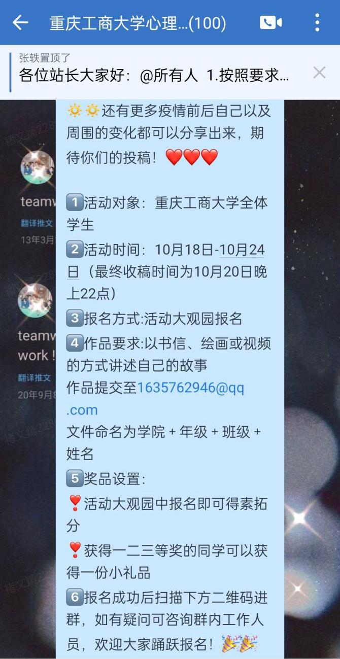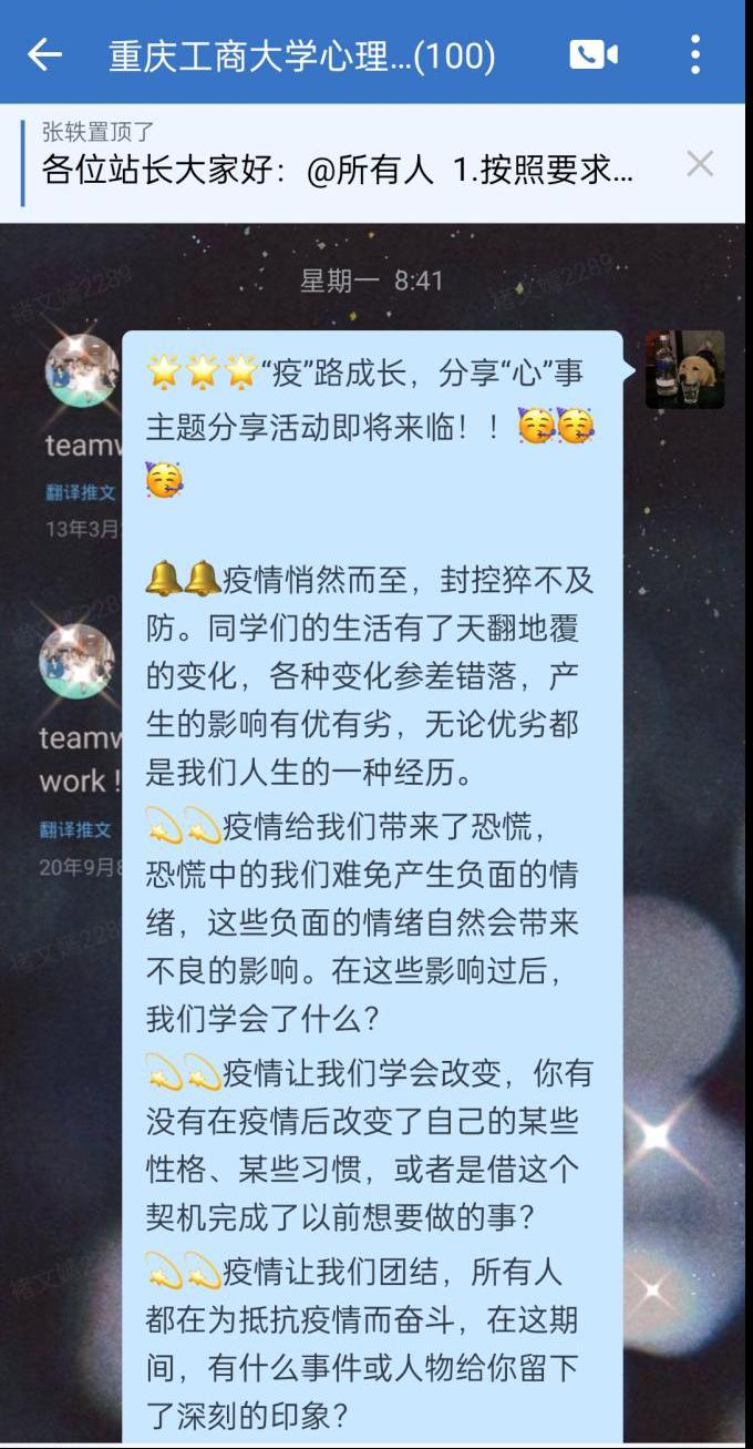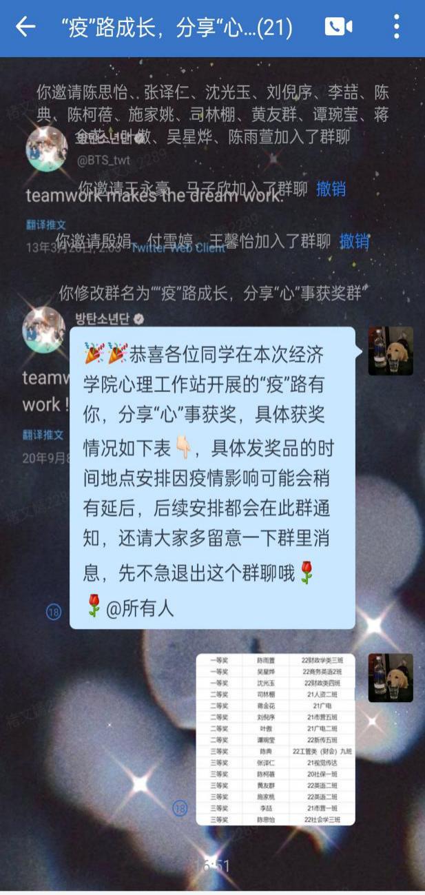 为进一步了解员工疫情期间的心理状态,缓解同学们因疫情期间产生的焦虑心情,K1体育心理工作站于10月18日组织开展“疫路有你,分享心事”线上主题分享活动,向全体在校员工征集疫情期间印象深刻的故事或自身的心路历程。同学们积极参与,共计500余名同学参加投稿。