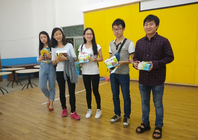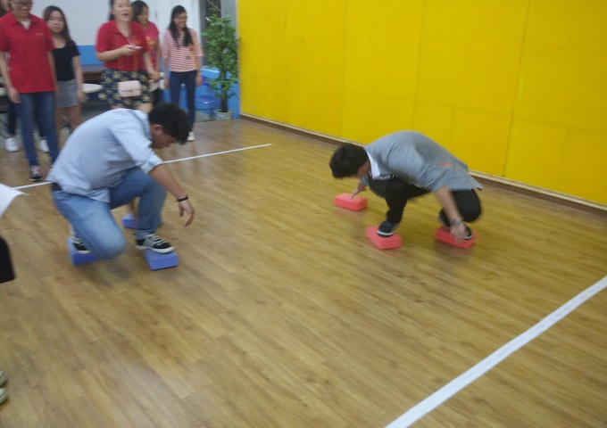 随后,各组参赛选手争分夺秒地参与到比赛中。比赛内容包括踩砖块,齐眉棍,你比我猜,解手链,南水北调五个项目,按五个项目总计时用时最短的组选出获胜的冠亚季军。活动现场充满了欢声笑语,每组队员利用排队的时间加紧练习,同时有因为解手链用时仅两三秒的惊讶,有因为南水北调乒乓球不听使唤老掉地的着急;有因为齐眉棍棍子哐当掉地的遗憾;有因为踩砖块东倒西歪触地时小伙伴鼓励支持的加油;有因为你比我猜各种奇葩肢体语言的滑稽……活动进行了一个半小时左右,比赛结束后在工作人员统计最终成绩时,工作人员给每位参赛队员分发了一把可爱的小扇子,而参赛人员还大部分沉浸在比赛中,和队员激烈的讨论着如何做才更快更好。最终第6组以总用时5分22秒勇夺冠军,其它队伍也都获得了不错的成绩。活动最后,工作人员为获胜队伍颁发了奖品,并通知获奖人员最终奖状会在5.25心理系列活动闭幕式上由员工处统一颁发。