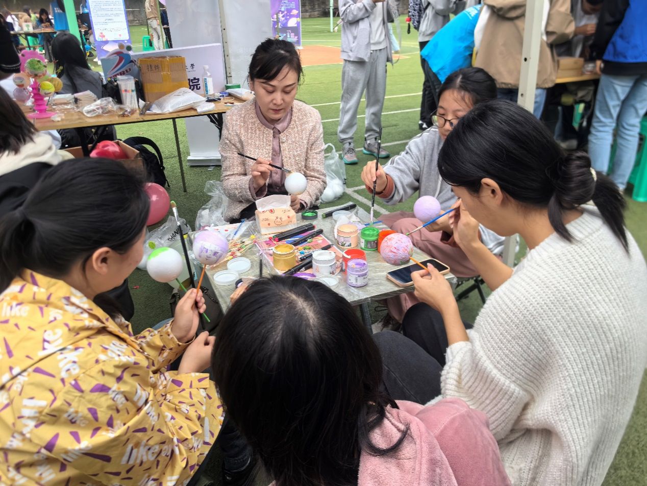 活动现场,伴随着动感的音乐节奏,同学们充分发挥自己的想象力和创造力,用多彩的画笔在泡沫球上绘制自己的创意和心情,有的写出“笑口常开”“冬日快乐”等文字表达当下愉快的心情;有的绘制美丽的花朵和可爱的小动物将自己的柔软善意与世界链接。同学们仿佛进入了一个神奇的绘画世界,他们化身为自由的画家,根据自己的喜好在泡沫球上添加各种装饰、丰富作品层次,用自己的方式将自己内心细腻的情感用画笔绘制了出来。同学们积极分享了绘制星球过程中的想法,讲述了在调色、修饰等环节中的心得体会,在尝试、调整、交流中用双手和心灵创造出了属于自己满意的“星球”。