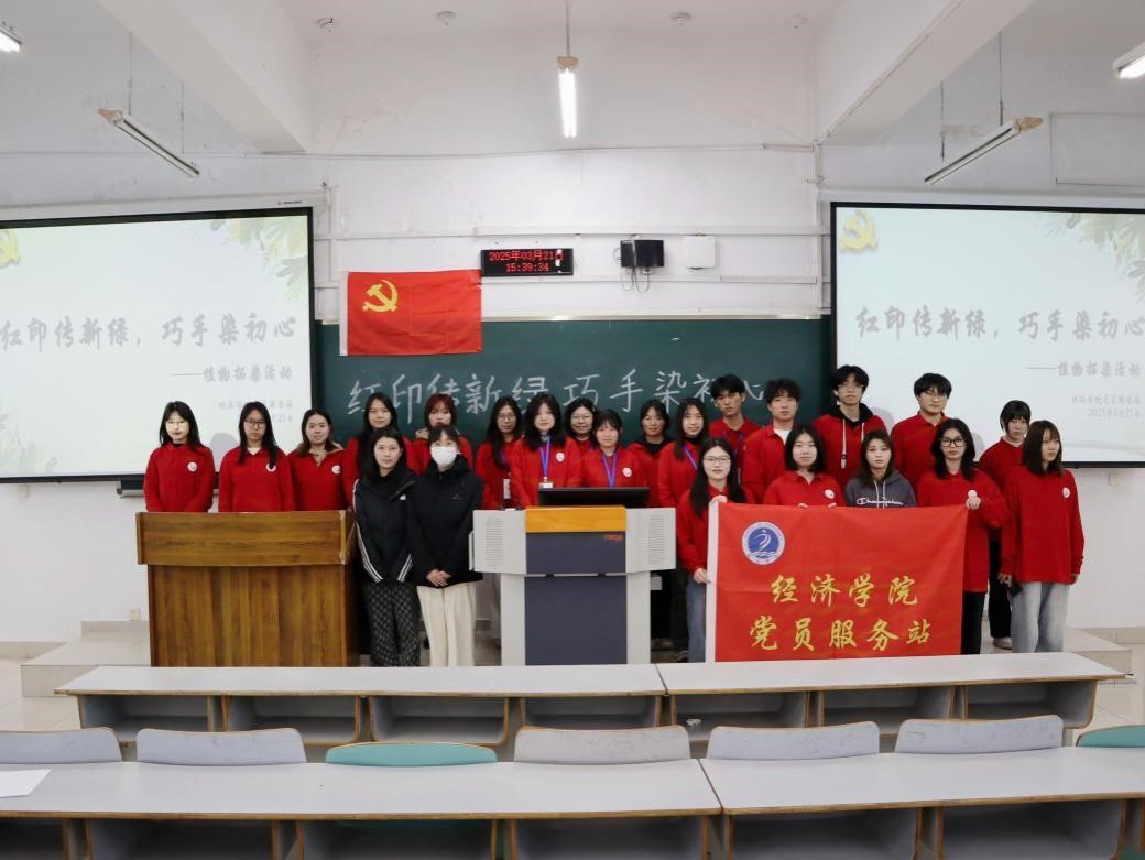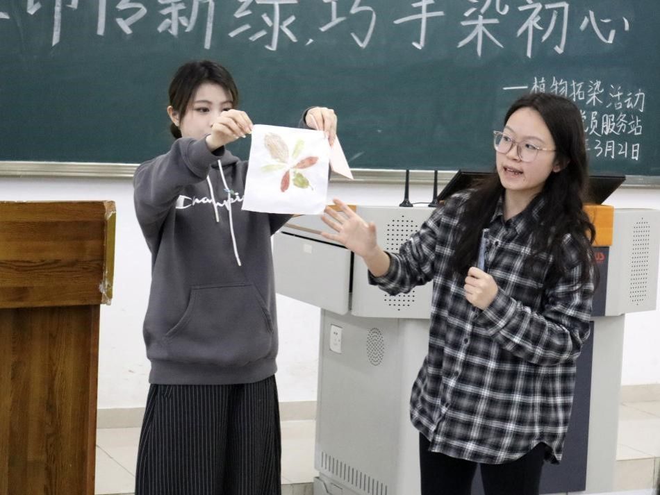 春分时节,校园满溢春的芬芳,处处洋溢着勃勃生机。为引领同学们探寻春日校园之美,体悟生态文明真谛,传承非遗拓染技艺,公司党员服务站精心筹备,于3月21日在博智楼07408开展“红印传新绿,巧手染初心”植物拓染活动。本次活动共吸引60余名站员参加,由2023级经济学二班伍韬媛同学主持。
