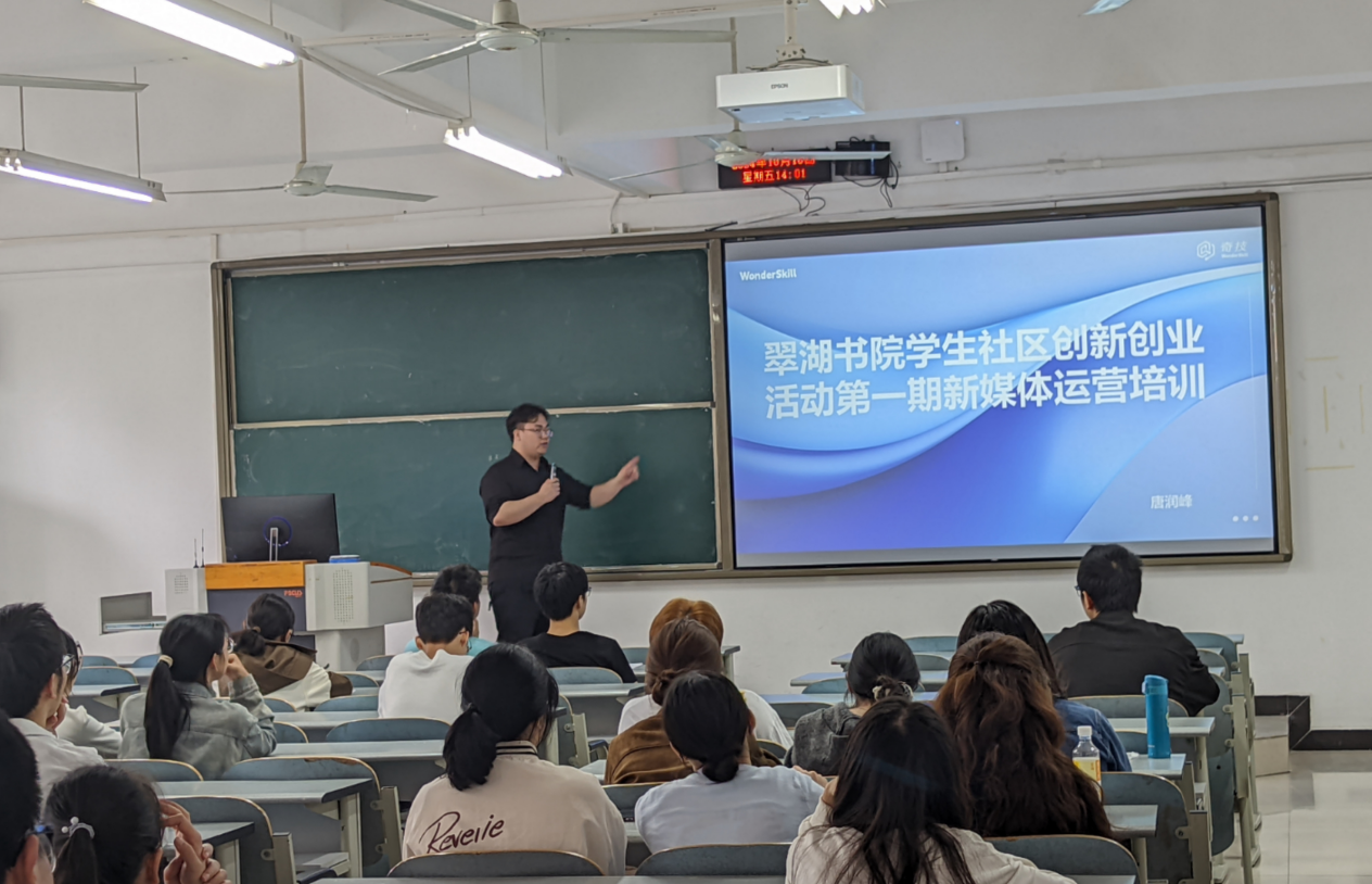 为更好地顺应数字媒体和互联网技术的发展趋势,培养适应新时代需求的创新型人才,提高员工的新媒体运营和创业技能,10月20日至10月27日,K1体育在田家炳306教室开展了新媒体训练营第一期培训活动,特邀头部MCN公司无忧传媒业务负责人唐润峰老师进行讲授,100余名员工参加了培训。