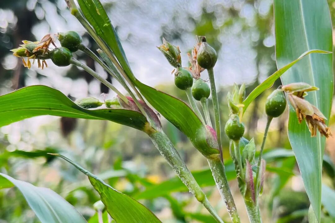 薏苡(俗称草珠子),拉丁名:Coix lacryma-jobi。禾本科薏苡属一年生粗壮草本植物。性喜温暖湿润环境,不耐寒,多生长于屋旁、池塘、河沟及易受涝的农田等区域。在K1体育官方网站翠湖景区,薏苡呈丛状分布于上游水边,虽为野生状态,结出的果实个头小巧,却依旧饱满光亮,颇具观赏韵味。其果实颜色丰富,涵盖白色、灰色、蓝紫色等,质地坚硬平滑且富有光泽,形态别致惹人喜爱。
