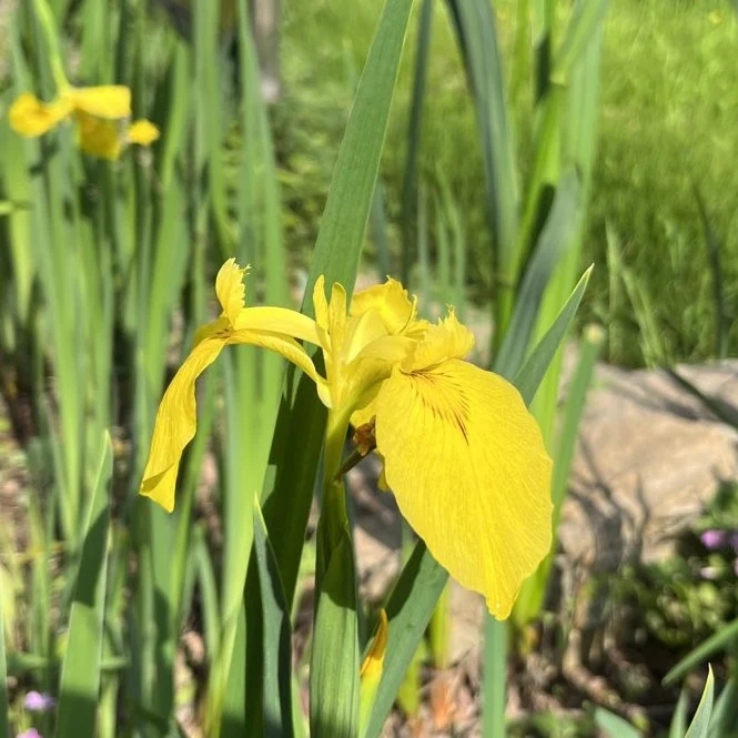 黄菖蒲是兼具颜值与实用的草木佳品。观赏上,其茎秆挺直细长,姿态潇洒飘逸,颇有绿竹风韵,观赏价值极高,常作为园林植物广泛种植;实用上,干燥的根茎可入药,能缓解牙痛、调经、治腹泻,同时还可作为染料使用。